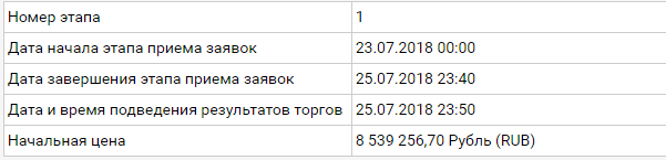 Так же устанавливается начальная цена, время проведения торгов, период приема заявок.