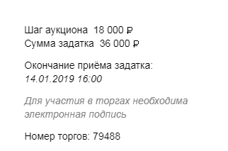 Итак, чтобы участвовать в торгах в такой форме нужно до 15 января оплатить задаток и подать заявку на площадке.
