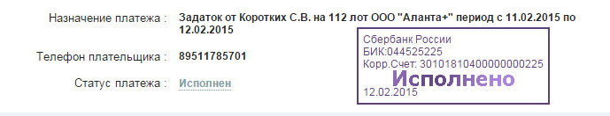 реквизиты для оплаты задатка.